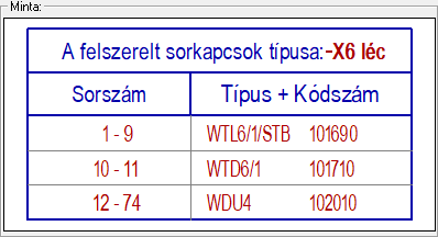 a sorkapocs típus és kódszám adatok szélessége, amely adatokból a táblázat összeáll itt is csak akkor adható meg, ha a