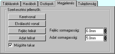 A beállítási panelen a szereléshely táblázat szerkesztés grafikus megjelenési jellemzői állíthatók be. |