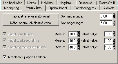 A beállítási panelen a generálandó grafikus kábellisták megjelenési formáit állíthatjuk be: