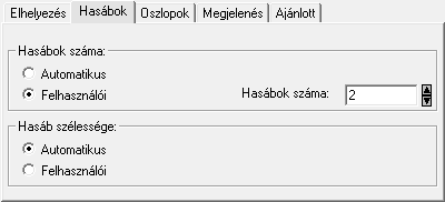 'Hasábok' 'Hasáb szélessége' részben az 'Felhasználói' opció van beállítva.