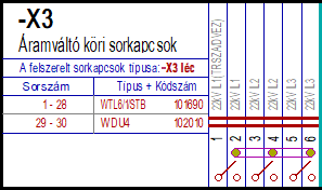 A felszerelt sorkapcsok típusa: -X1 léc
