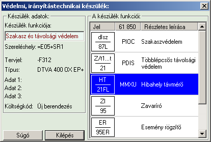 A jobb oldali 'A készülék funkciói:' ablakrészben, az aktuálisan kijelölt készülék funkciói jelennek meg. Ezek a funkciók szabadon változtathatóak. Rendezhetőek, törölhetők, az egyes funkciók, vagy új funkciót adhatunk meg a szabványos IEC 61850 lNode tábláról kiválasztva. A kommunikációs készülék grafikus képe az adatok megadása során a kijelölési helyen az aktulális állapotnak megfelelően folyamatosan változik.