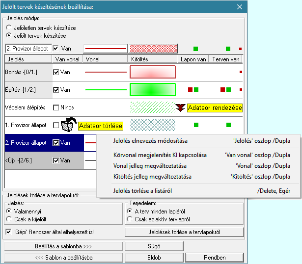 'Bontás/Építés' jelölések törlése a kijelölt terveken funkciójával